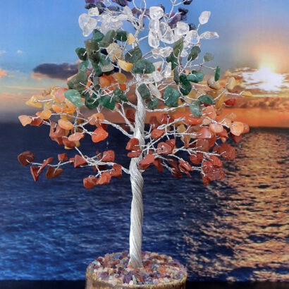 - Seven Chakra Natural Color Healing Gemstone Beautiful Feng Shui Tree (Golden Wire) Size approx 9-11 Inch Handmade In India. A Gemstone tree is a tree with gemstones as the leaves and wires as the branches and the trunk and a piece of wood as a base. Something simply beautiful like a gemstone tree can create a space where energy can freely flow and also attract good things! The energy of gemstone trees is one of freely flowing abundance.