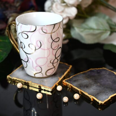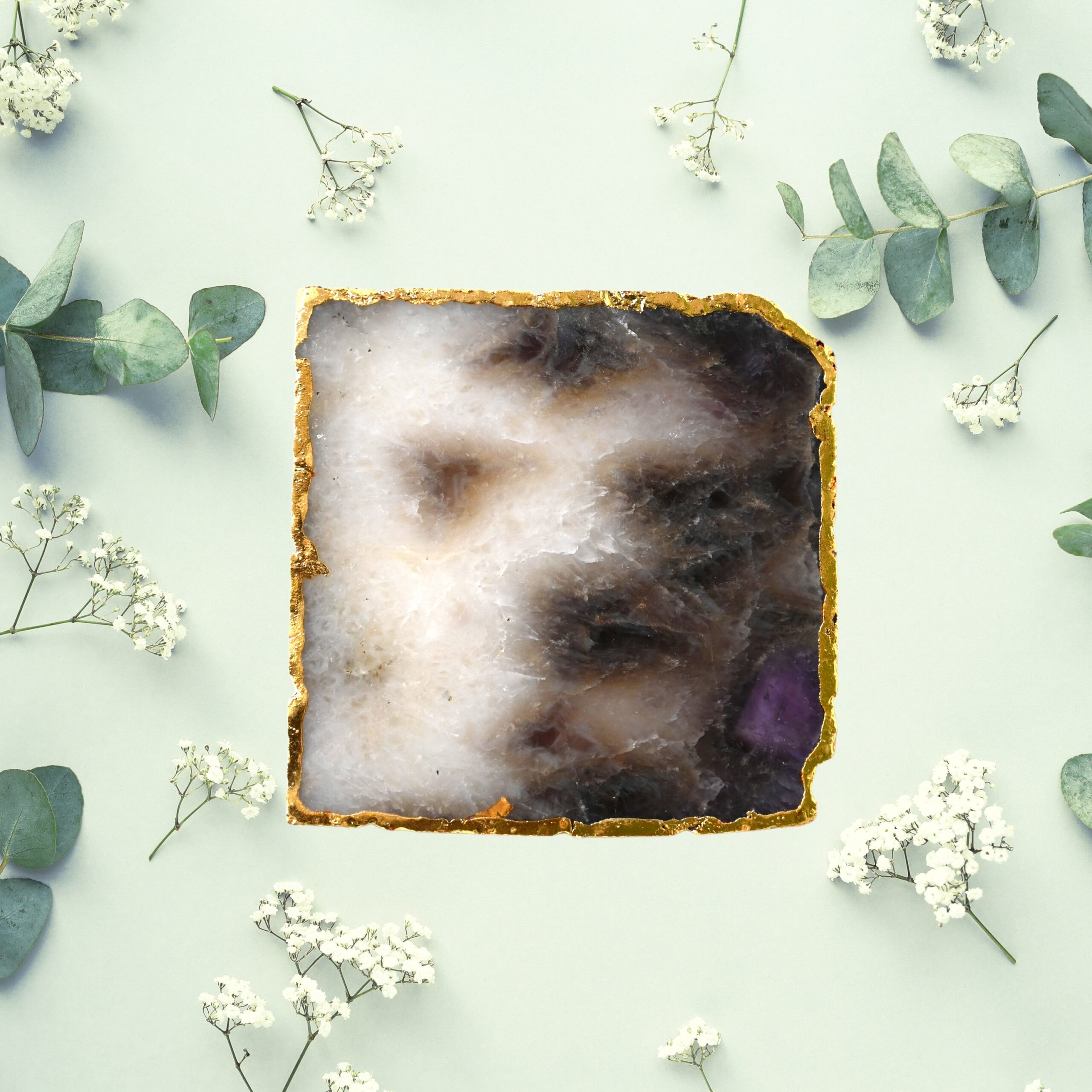 Crystals Healing Stones Natural Amethyst Chakra Orgone Handmade Coasters for Coffee Tea Drinks Bringing Growth Stability in Life For Home Decoration Energy Meditation Pack of 4 of Size 9×9 CM.