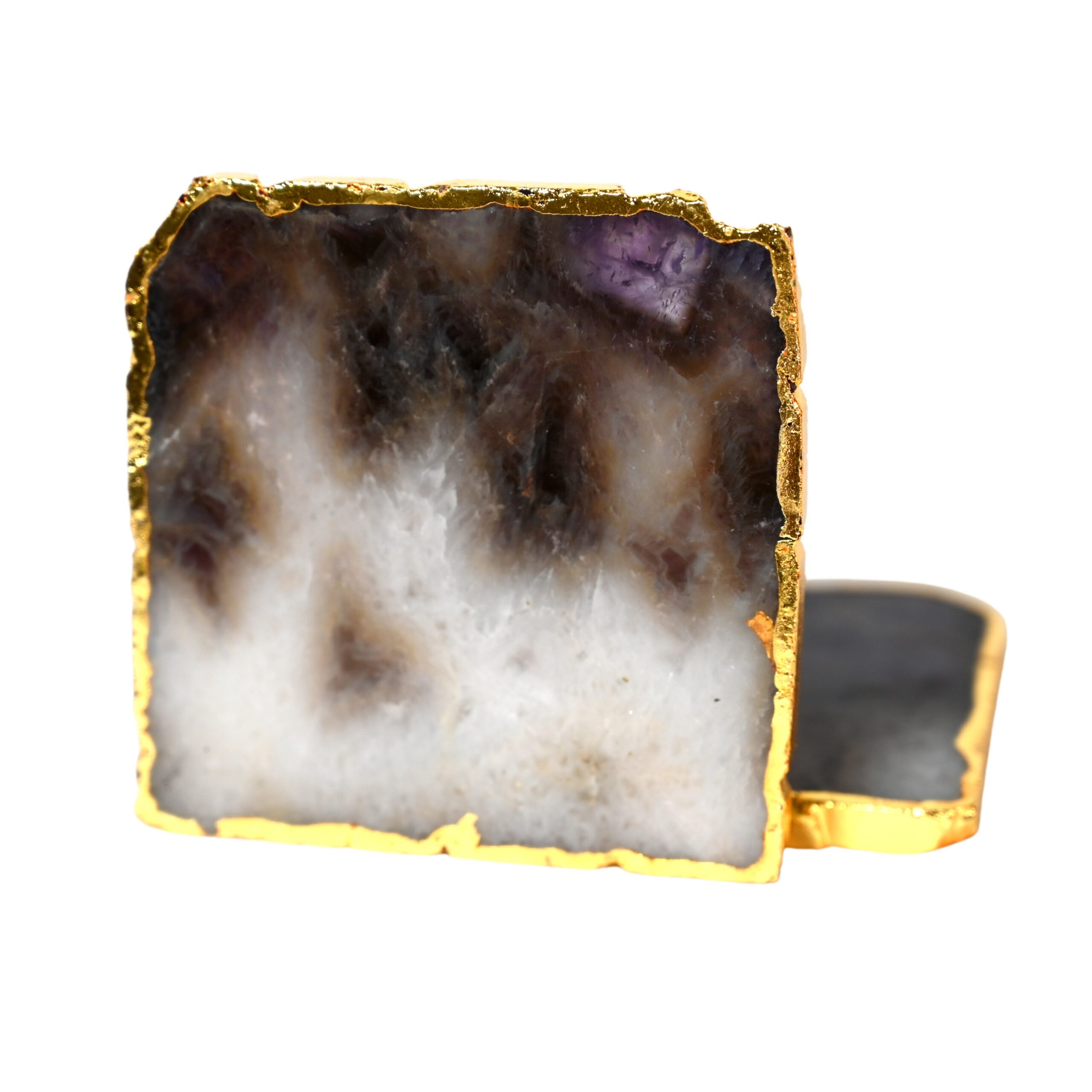 - Amethyst Chakras healing crystals handmade coasters balances our chakras with the energy of different crystal and stones used in it to ensure our emotional, spiritual, mental and physical well-being. Please note that the product is a PACK of 4 PIECES of coaster which have only AMETHYST chakras gemstones in all of them. Size is of 4.5 CM of RADIUS as these are in ROUND shape and weight of each coaster is around 100 grams.