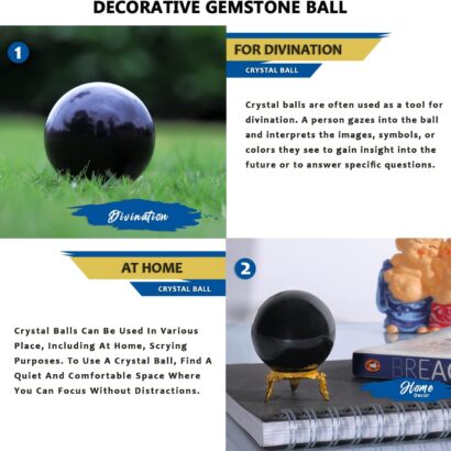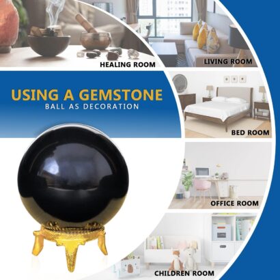 1.) Gemstone sphere : Natural Healing Black Crystal Gemstone Sphere Divination Ball Sculpture Figurine With Stand |Carved Stone ball for Crystals Healing Reiki, Feng Shui Crystals, Chakra Aura Balance.