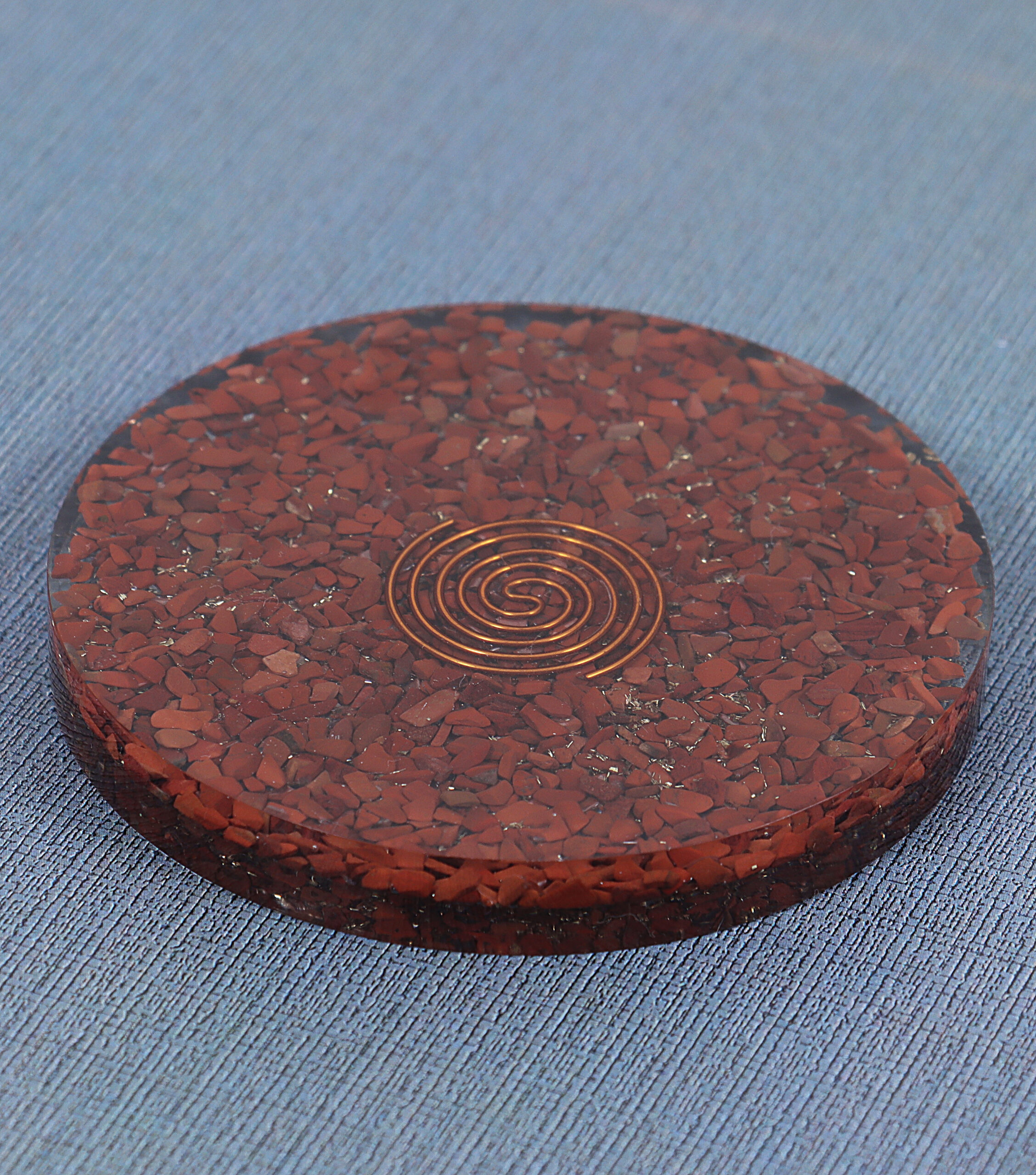 • Red Jasper Chakras healing crystals handmade coasters balances our chakras with the energy of different crystal and stones used in it to ensure our emotional, spiritual, mental and physical well-being. Please note that the product is a PACK of 4 PIECES of coaster which have only RED JASPER chakras gemstones in all of them. Size is of 4.5 CM of RADIUS as these are in ROUND shape and weight of each coaster is around 105 grams.