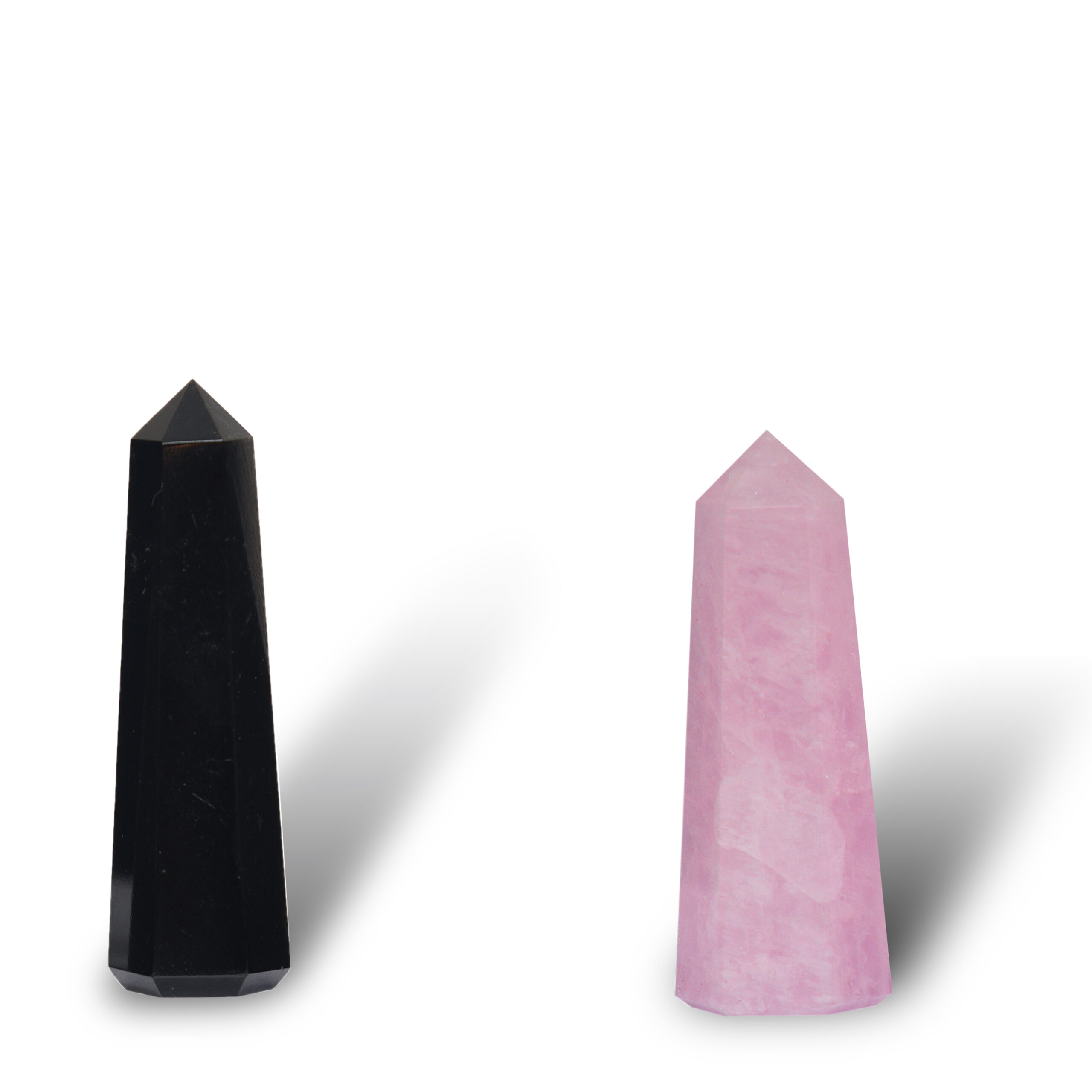 Crystals Healing Stones Crystal Wands 2.25?-2.50″ Rose Quartz and Black Obsidian 6 Faceted Reiki Chakra Stones Pencils 2 Pcs Set.