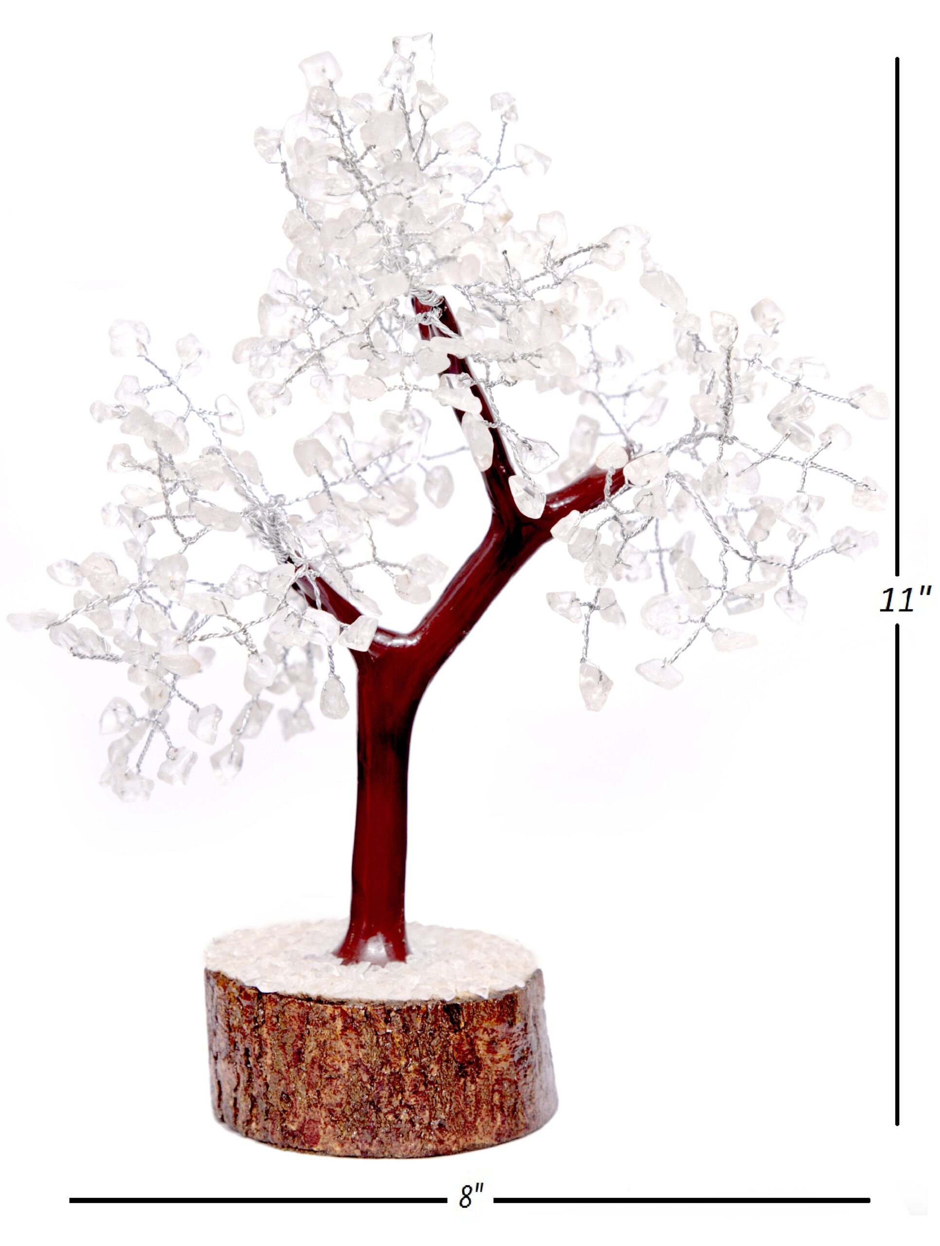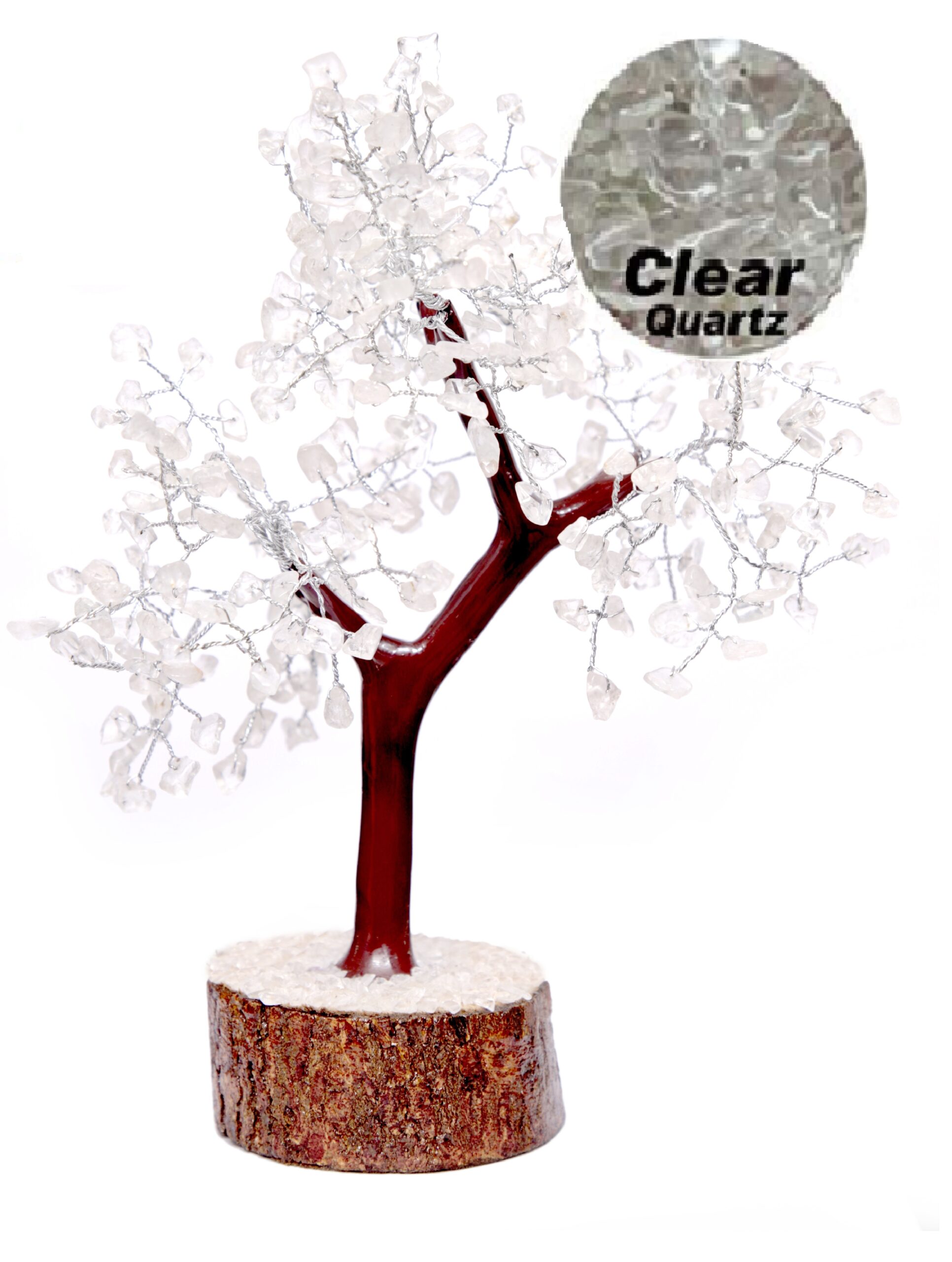 - This Beautiful Clear Quartz Chakra Natural Color Healing Gemstone Tree (Silver Wire) Handmade In India. Size approx. 10-12 Inches, on Arrival Branches, Need Bending & Shaping the tree as per your desired form. This Tree having 300 Natural Gemstones or Beads of 7 Chakra Stones. The packet contains the Clear Quartz Chakra Tree as shown in the image with a very Beautifull Pendant or Locket of Clear Quartz Chakra STONES within a Box.