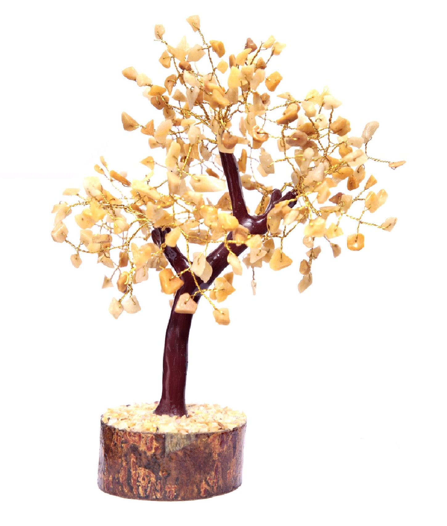 - This Beautiful Seven Chakra Citrine/Yellow Quartz Natural Color Healing Gemstone Tree (Gold Wire) Handmade In India. Size approx. 10-12 Inches, on Arrival Branches, Need Bending & Shaping the tree as per your desired form. This Tree having 300 Natural Gemstones or Beads of Citrine/Yellow Quartz Chakra Stones. The packet contains the Citrine/Yellow Quartz Chakra Tree as shown in the image with a very Beautifull Pendant or Locket of SEVEN CHAKRA STONES within a Box.