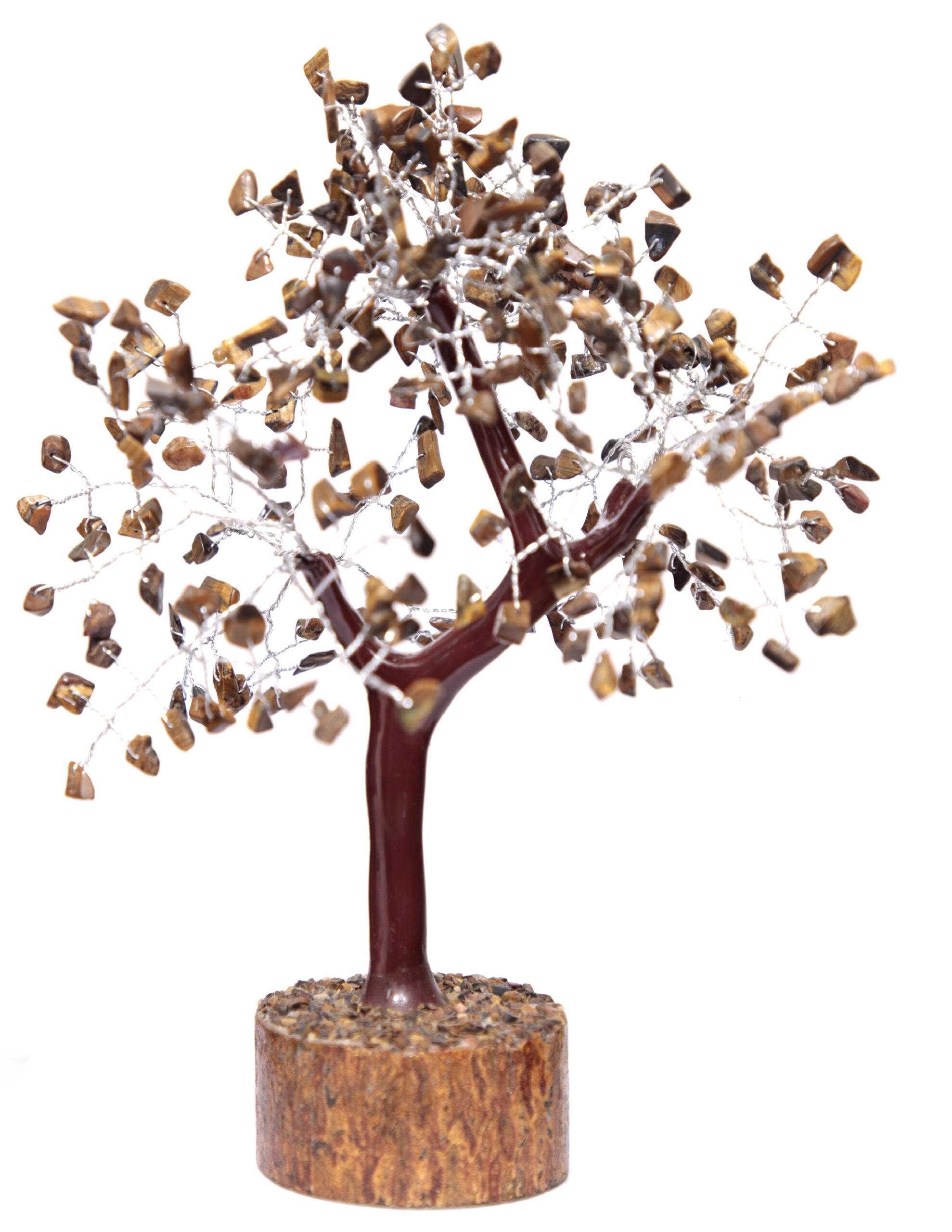 - This Beautiful Tiger Eye Chakra Natural Color Healing Gemstone Tree (Gold Wire) Handmade In India. Size approx. 10-12 Inches, on Arrival Branches, Need Bending & Shaping the tree as per your desired form. This Tree having 300 Natural Gemstones or Beads of 7 Chakra Stones. The packet contains the Tiger Eye Chakra Tree as shown in the image with a very Beautifull Pendant or Locket of Tiger Eye Chakra STONES within a Box.